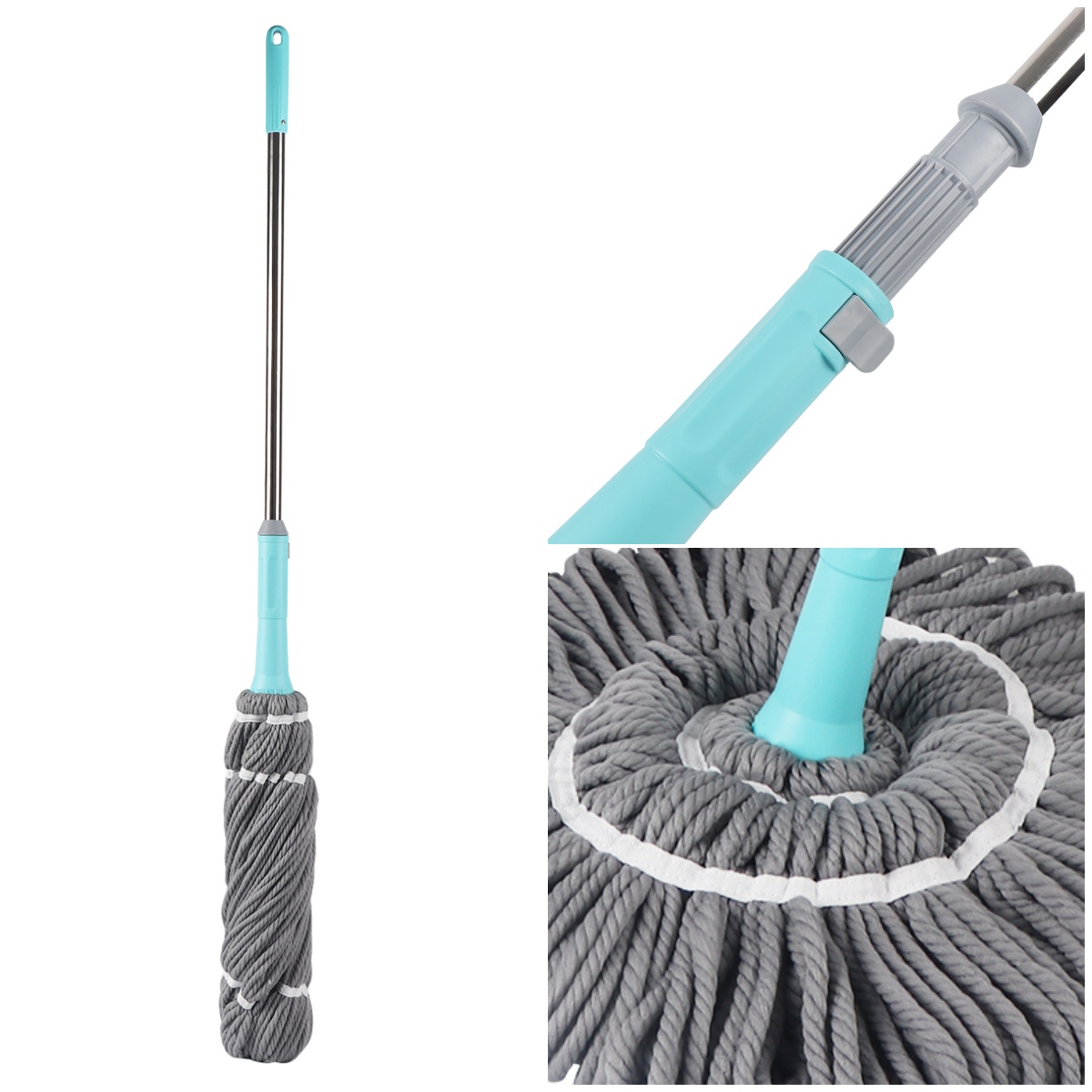 آلية اللف: ببساطة قم بلف المقبض للضغط على رأس الممسحة لتجف، مما يلغي الحاجة إلى لمس الماء المتسخ بيديك. يزيل ما يصل إلى 90% من الرطوبة، مما يسمح للممسحة بأن تجف بشكل أسرع وخالية من الخطوط.