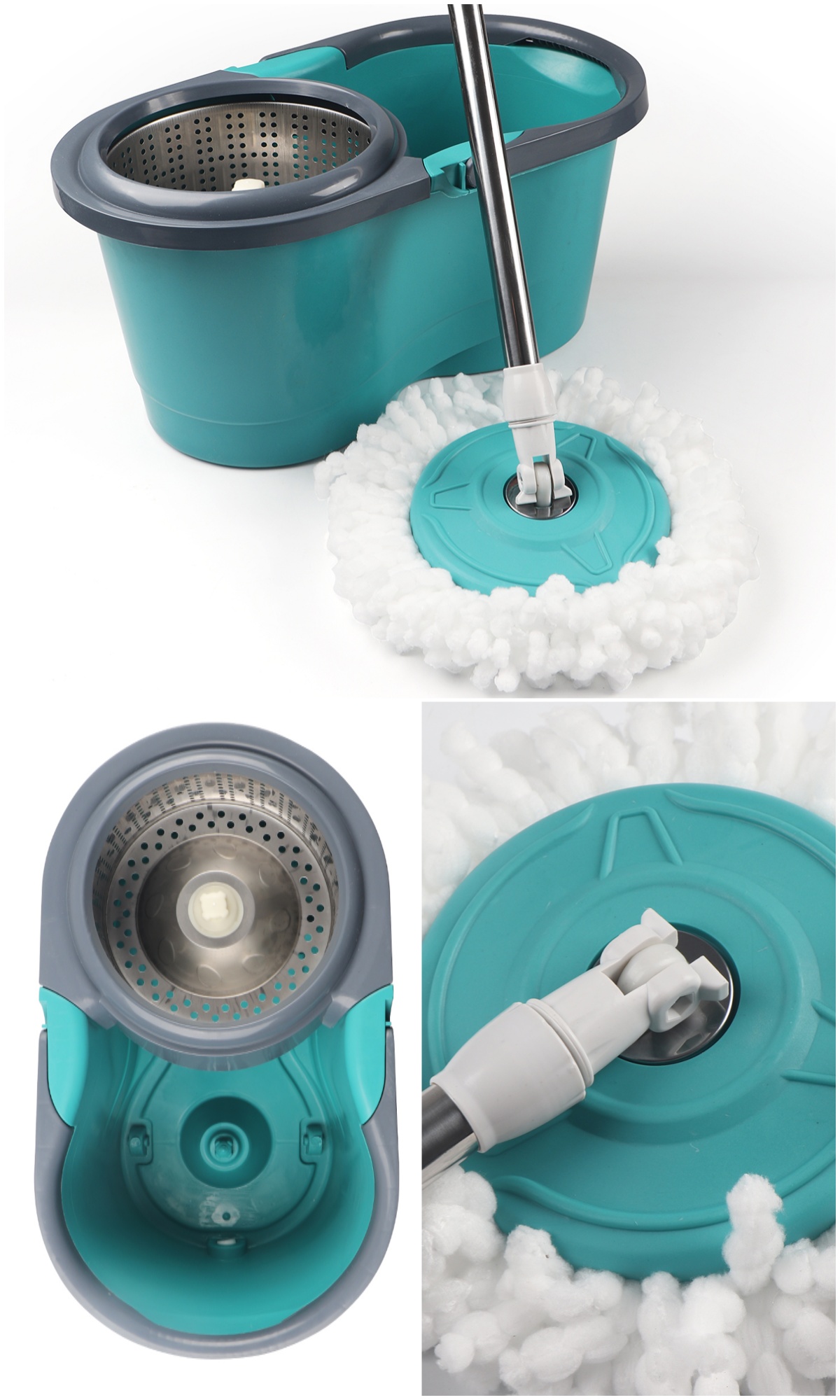مجموعة دلو الممسحة الدوارة مع جهاز فك: دلو الممسحة هذا مجهز بمحرك يزيل البقع والماء بسهولة من الممسحة. يمكن ليديك غسل الممسحة وتجفيفها بسهولة دون لمس الماء المتسخ.