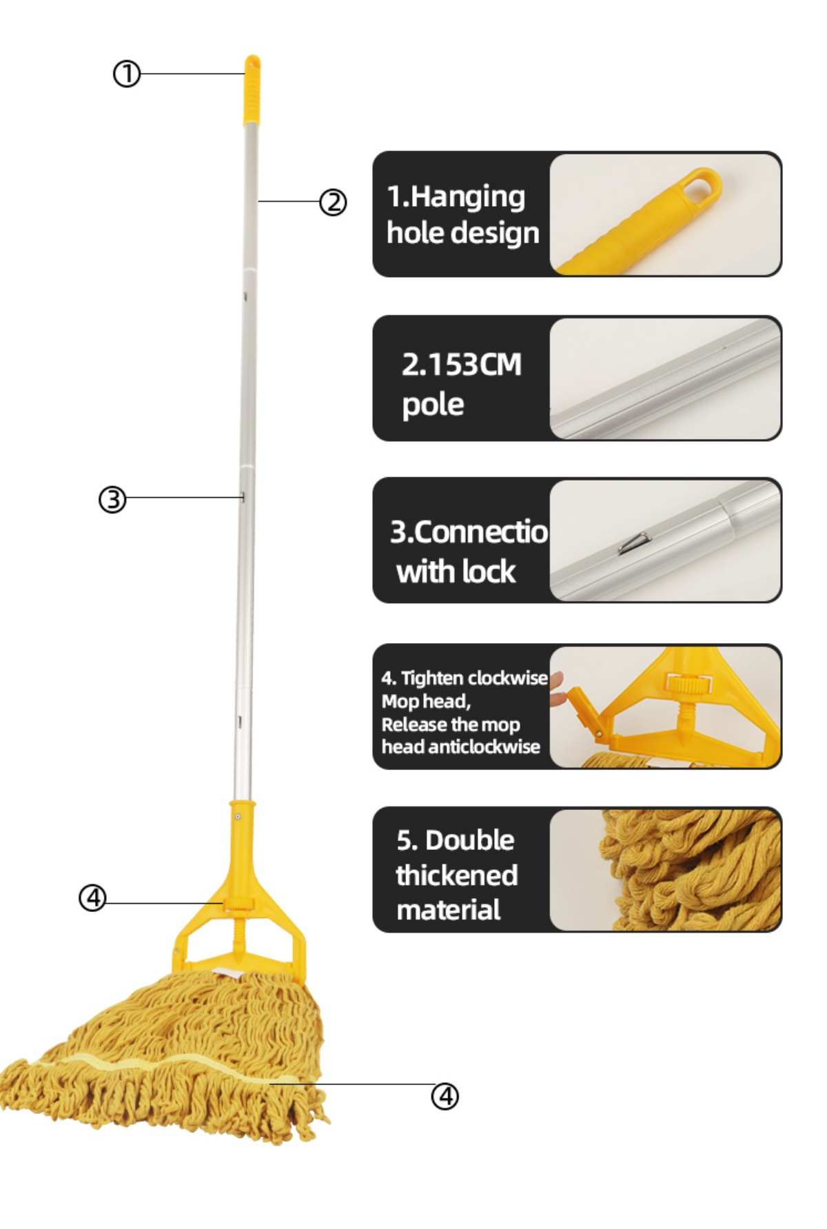 توفر الممسحة التجارية الحلقية، التي تتكون من عمود ألومنيوم مقسم ورأس ممسحة حلقية، حل تنظيف فعالاً ومرنًا. يمكن تعديل طول عمود الألومنيوم بحرية للتكيف مع احتياجات الارتفاع المختلفة للتنظيف، وهو مثالي للفنادق والمستشفيات والمستودعات وغيرها من سيناريوهات التنظيف عالية الكثافة.